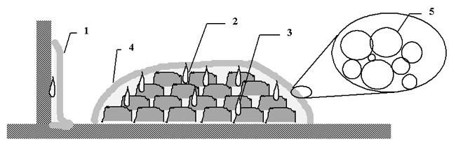 2 - A solução, drenando da espuma, penetra nos materiais umectando-os e retardando sua combustão.