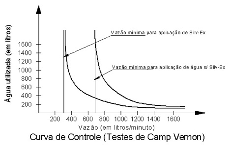 água. O gráfico mostra a quantidade necessária para extinção em função da vazão utilizada em