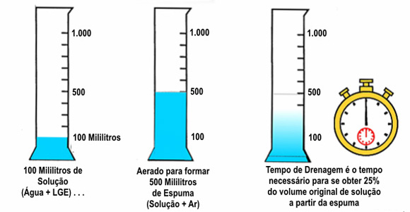 Conforme comentado anteriormente, a expansão e o tempo de drenagem de uma espuma são bastante