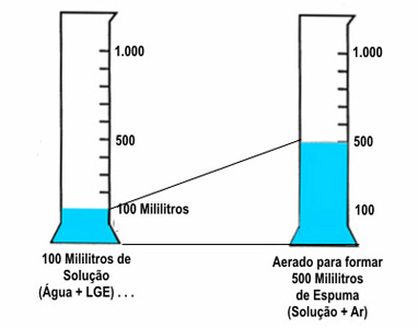 após a incorporação de ar em 50 ml de espuma. Diferentes equipamentos produzem expansão diferente