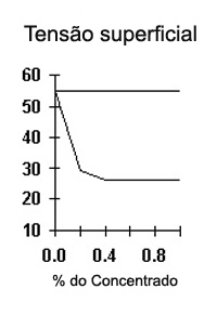 baixa tensão superficial e, devido a isto, maior capacidade de umectação e penetração, como