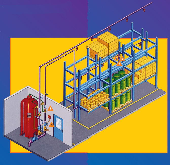 dilúvio (water spray) ou sistemas tipo fechado (sprinkler com bulbo).