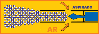 para formar uma massa expandida de bolhas. Dispositivos não aspirados podem