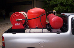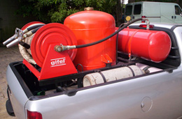150 kg de pó químico PÚRPURA K e 110 litros de solução pré mistura de