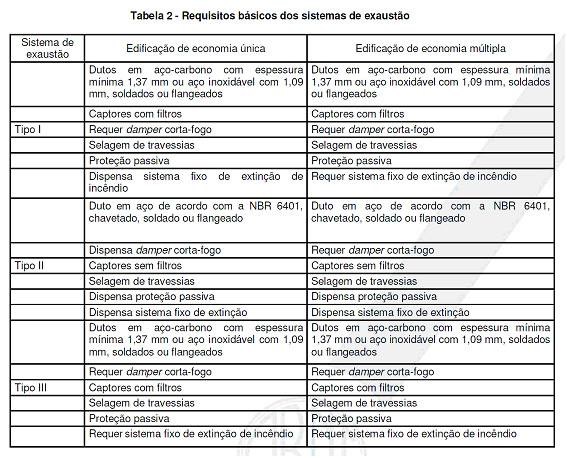 sistema de exaustão atender os requisitos básicos da tabela 2.